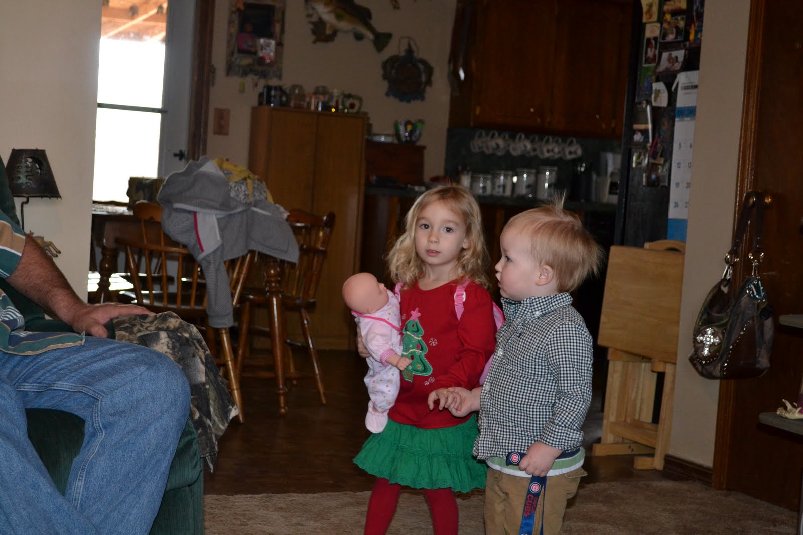 Ady is very imaginitive, VERY! She has her baby and her diaper bag on her back and is going to "the store"! Poor Reese was dragged into this pretend trip! He was such a good sport and did whatever she told him! Watching these 2 is EXACTLY like watching Jessi and Cody at this age! Ady did let Reese carry the keys to the car though!!